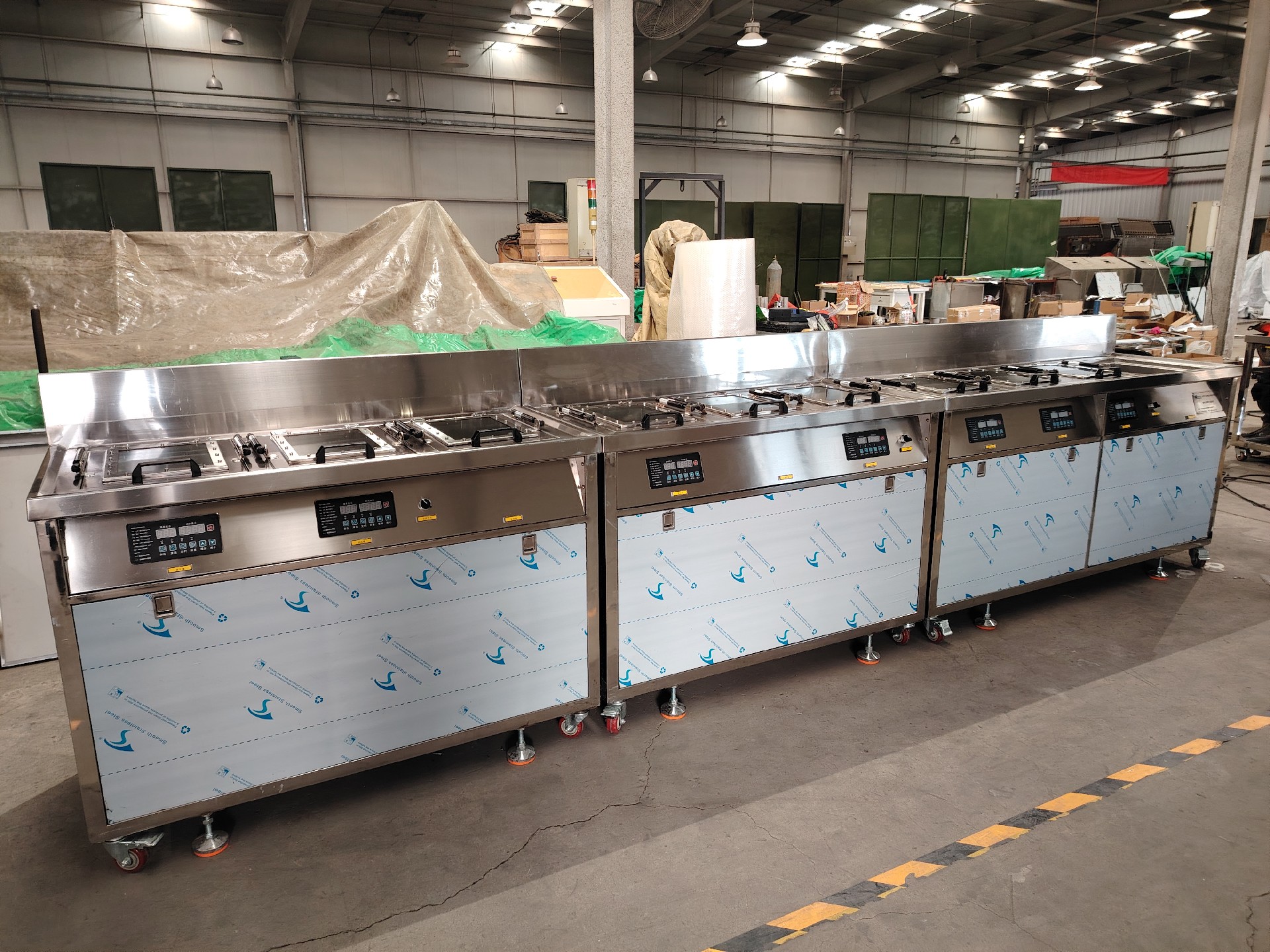 我公司特設計以下清洗工藝:進料→1超聲波清洗槽→2超聲波清洗槽→3超聲波清洗槽→4鈍化槽(帶加熱)→5水洗槽→6配位劑槽(帶加熱)→7水洗槽→8